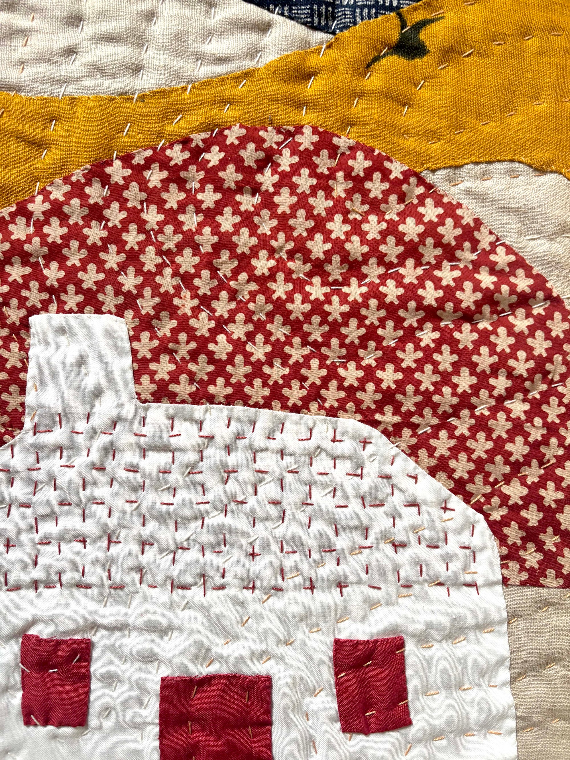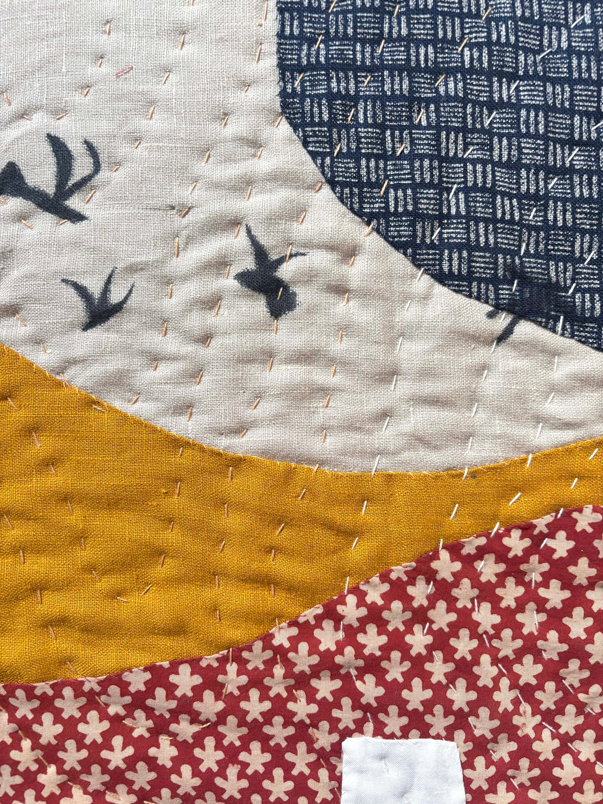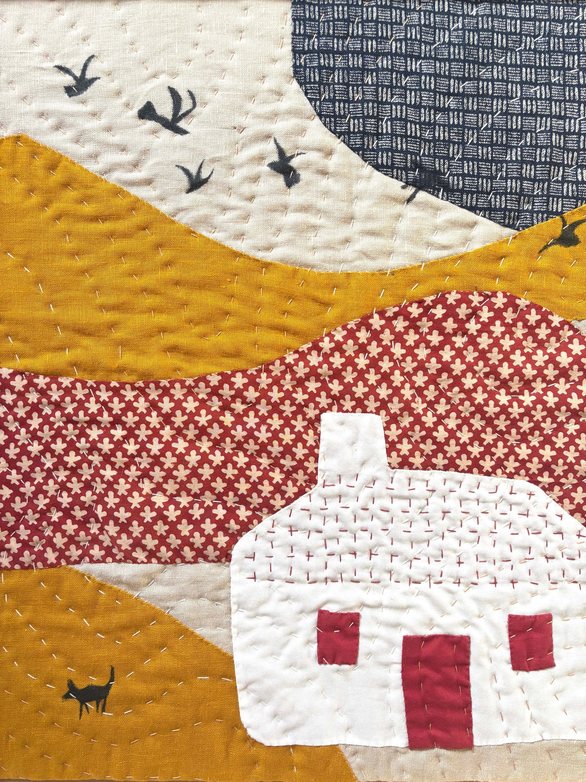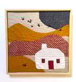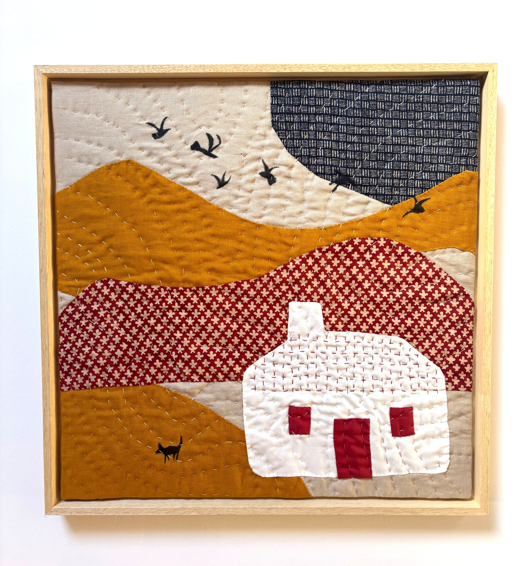 Crafted with natural linens and cottons, enhanced with ink and detailed hand-stitching, this textile artwork blends texture, tone, and narrative in a way that’s both grounded and dreamlike. Framed and ready to hang, it's a contemplative piece that invites closer looking—and imagining.