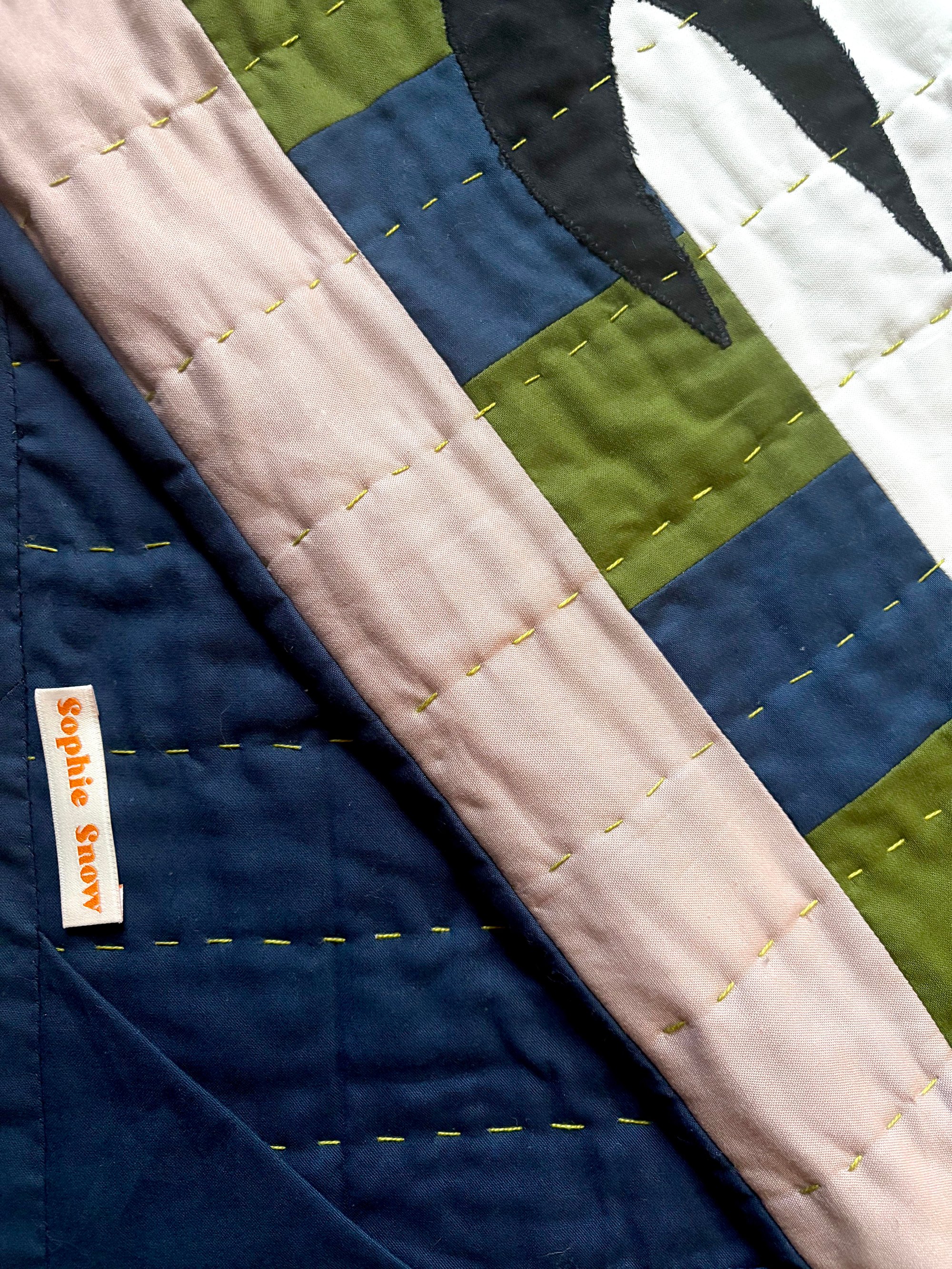 Add warmth, character, and a touch of artistry to your home with our bespoke quilted wall hangings. Each piece is thoughtfully crafted, combining the precision of machine appliqué with the intricate beauty of hand stitching. Our lovely bright spark motif is very popular in our designs.